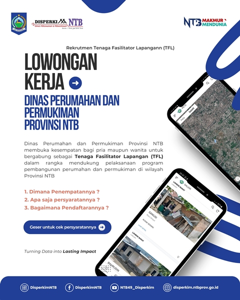Dinas Perumahan dan Permukiman Provinsi Nusa Tenggara Barat membuka kesempatan bagi semua, baik pria maupun wanita, yang berdedikasi, berintegritas, dan siap bekerja di lapangan untuk bergabung sebagai Tenaga Fasilitator Lapangan (TFL) dalam Program Pendataan By Name By Address (BNBA) Rumah Tidak Layak Huni (RTLH) pada Kawasan Kumuh 10–15 Ha Tahun Anggaran 2025. Masa kontrak berlangsung selama 1–3 bulan, disesuaikan dengan lokasi penugasan di lapangan.